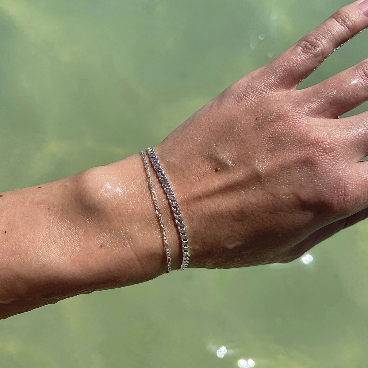 Vores Frida Figaro Bracelet er et armbånd, der udstråler en subtil balance mellem elegance og tidløs stil. Dette figaro-armbånd er omhyggeligt skabt med præcision og omhu, og dets unikke design reflekterer en harmonisk fusion af klassisk skønhed og moderne raffinement.
