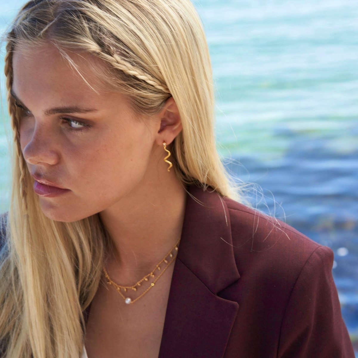Den bølgede detalje giver en unik tekstur, der fanger lyset og tilføjer et elegant finish til dit look. Wave Earrings fås i både forgyldt og sølv, hvilket giver dig mulighed for at vælge den finish, der passer bedst til din personlige stil. Med deres enkle, men markante design, er disse øreringe perfekte til både daglig brug og specielle lejligheder, hvor du ønsker at tilføje et sofistikeret touch.
