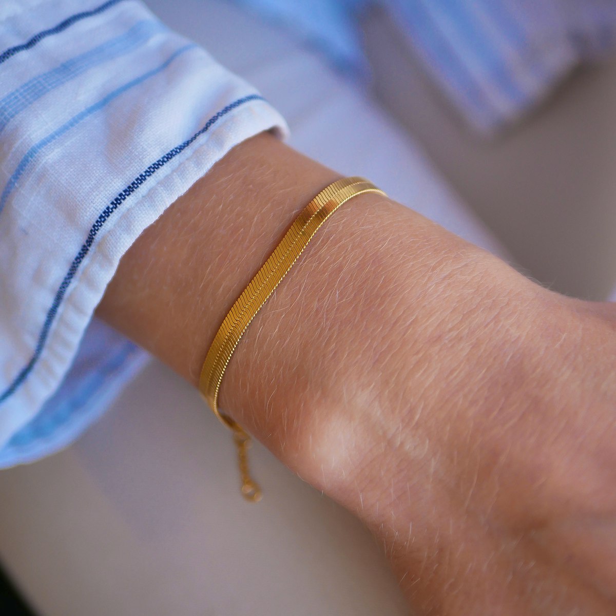 Enamel Copenhagens "Carla Bracelet" udstråler et råt og smukt udtryk på samme tid, og kæden ligger sig så elegant på håndleddet. A-Hjort forhandler også "Caroline Bracelet", som blot er en tyndere version af "Carla Bracelet". Miks og match armbåndet med "Carla Necklace" for at få det ultimative look. Kæden findes både i forgyldt og sterling sølv.