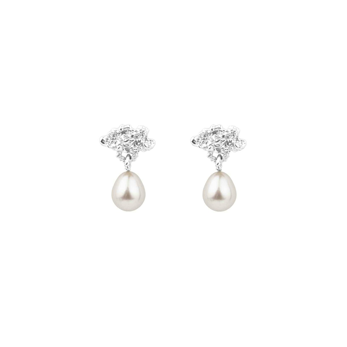 Hollow Cloud i sølv byder på en organisk sky med en hvid regndråbe af ægte ferskvandsperle.
