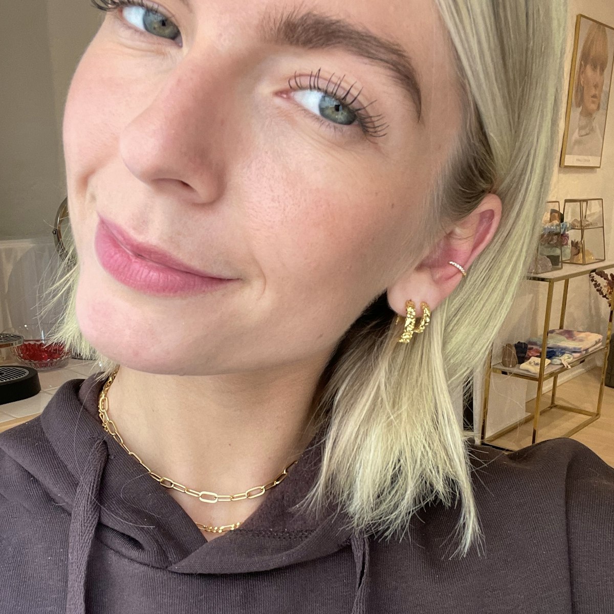 Du kan let kombinere dem med andre hoops for et kontrastfuldt look.