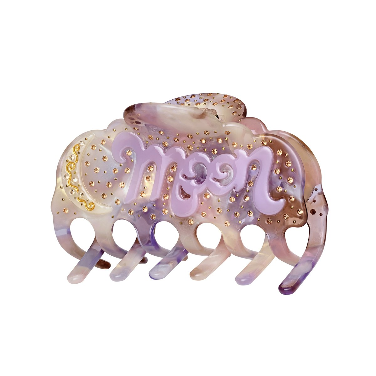 Med denne Hairclaw Orchid, topper du din hårstyling med en hyldest til universets mystik og den evige fascination af himmelen og det uendelige verdensrum, deroppe blandt stjernerne og månen. Udført med omhu, er denne hårklemme ikke bare et accessorie, det er en rejse udi den æstetiske skønhed, hvor du får et lille stykke af himlens mystik med på farten.