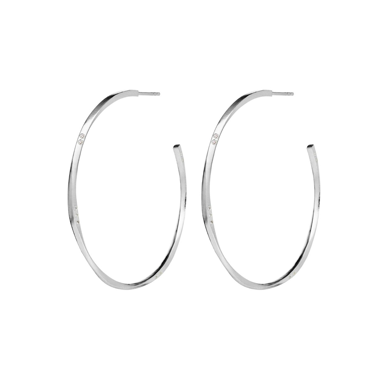 Disse enestående øreringe præsenterer et twistet design, der smukt nyfortolker den tidløse hoop-ørering. Med deres skinnende zirkoner, der fanger lyset i enhver bevægelse, tilføjer de et sofistikeret touch til enhver smykkesamling.
