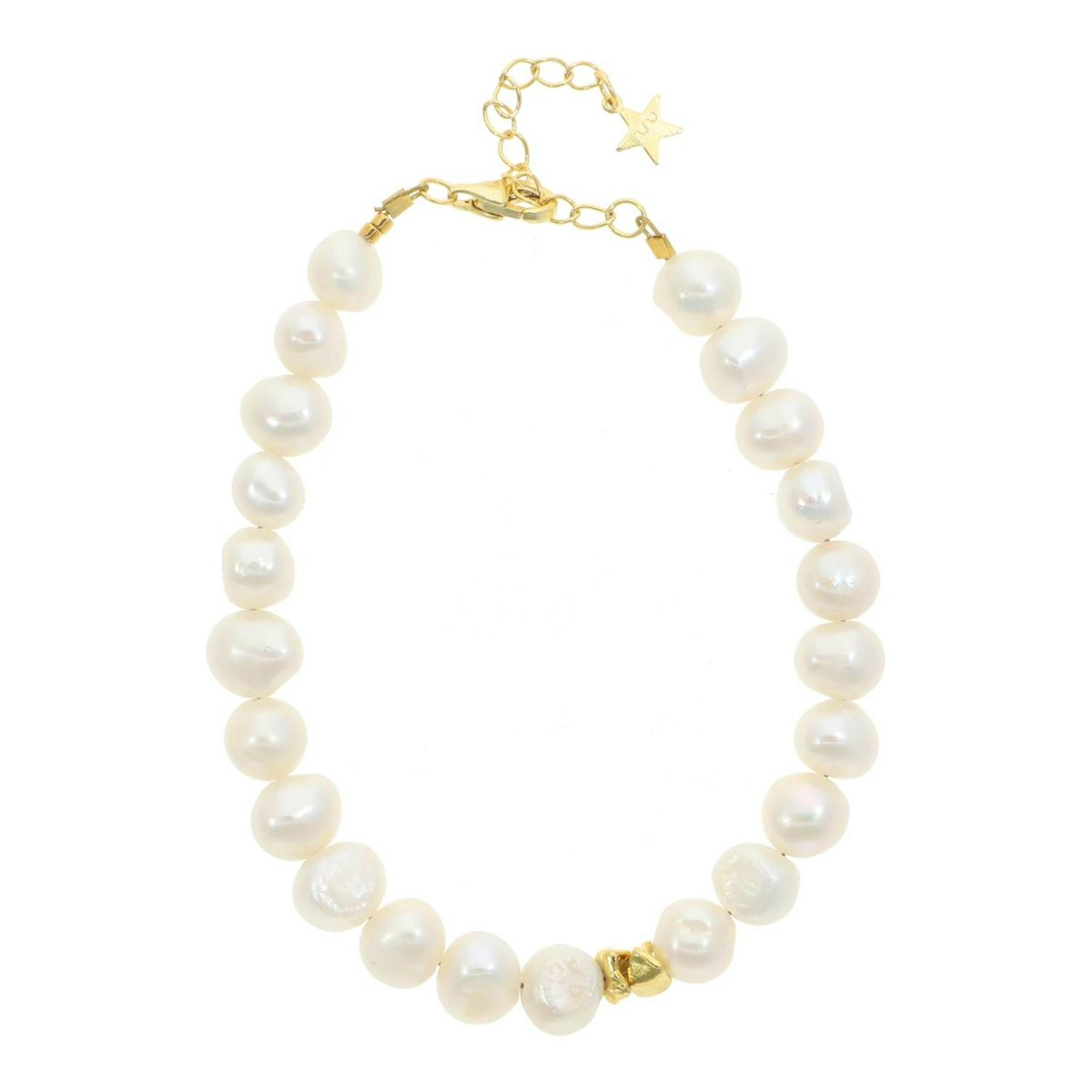 Jennifer Bracelet er et elegant, håndlavet armbånd i 24 karat forgyldt genbrugssterlingsølv 925, designet med hvide/perlefarvede ferskvandsperler og én enkel gulddetalje som et diskret midtpunkt. Smykket udstråler klassisk skønhed med et moderne twist og balancerer det tidløse med det personlige. De naturlige ferskvandsperler har en smuk glans og let variation i form, hvilket gør hvert armbånd unikt og levende.