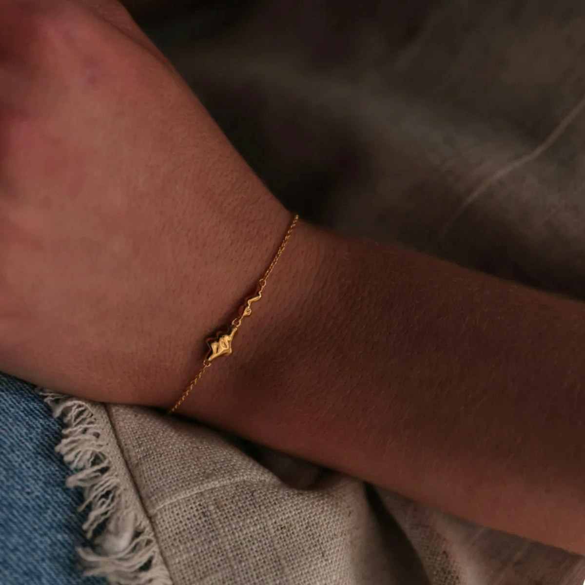 Armbåndet måler 15 til 18 centimeter i længden og kan justeres, så det passer perfekt til dit håndled. Det er fremstillet i 100 procent certificeret genanvendt sterlingsølv og belagt med et lag af varm 18 karat guld, hvilket giver en luksuriøs glød og lang holdbarhed. Alle materialer er nikkelfri, så smykket er behageligt at bære hele dagen.