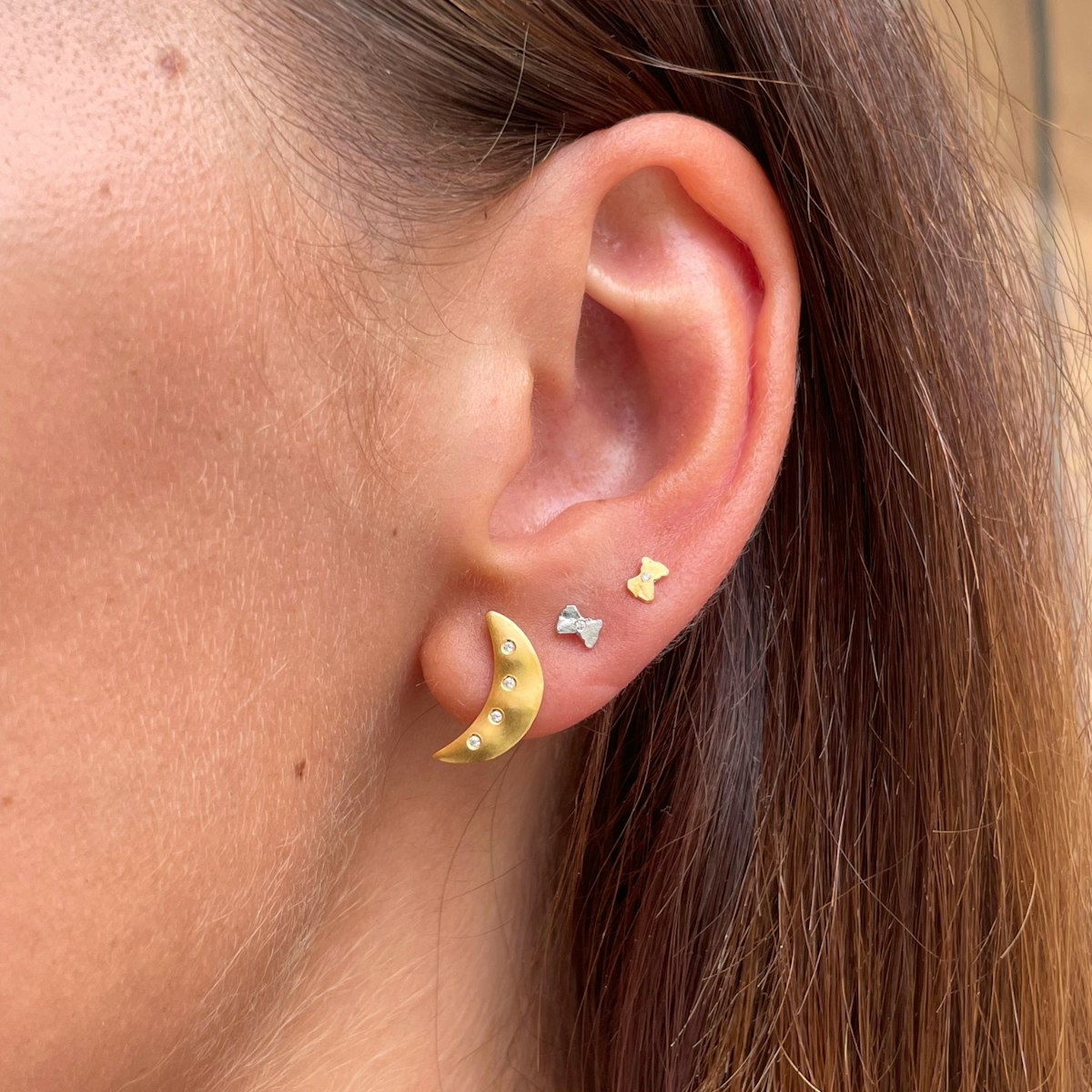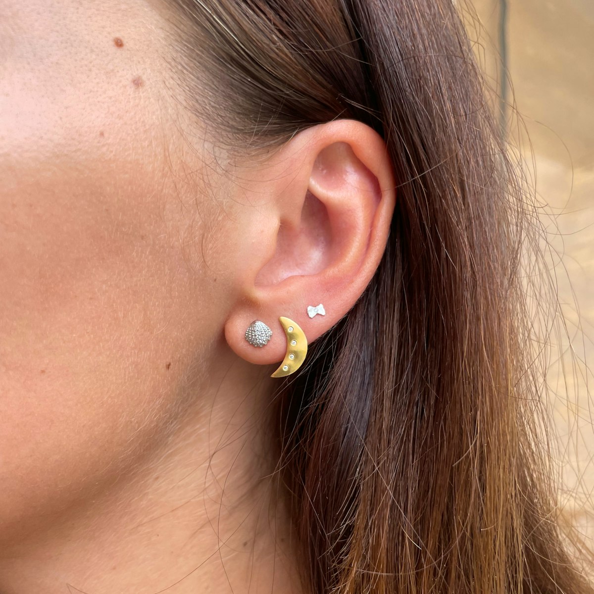 Den delikate måneform og de strålende zirkonia-sten gør ørestikken til en vidunderlig tilføjelse til enhver smykkesamling, og den tilføjer et strejf af magi og glamour til ethvert outfit.