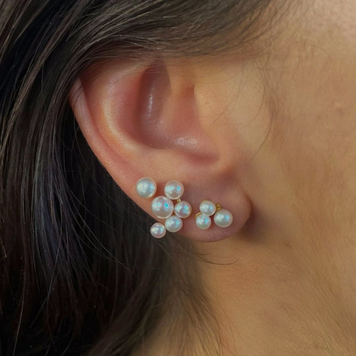 En traditionel ørestik med ferskvandsperler, der bringer en unik tvist med en buket af perler i varierende størrelser.